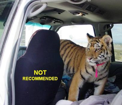 We don't recommend having any animals running free in the car when you are driving, regardless of  if it is a bird, reptile, canine or feline. It can cause dangerous distractions. Your car will also stay cleaner.