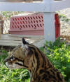 Even when keeping your animals outside, like this ocelot, leave the crate in the cage after you unload them, that way they will not associate the crate with travel to the vet only. Feed them in it once in a while.